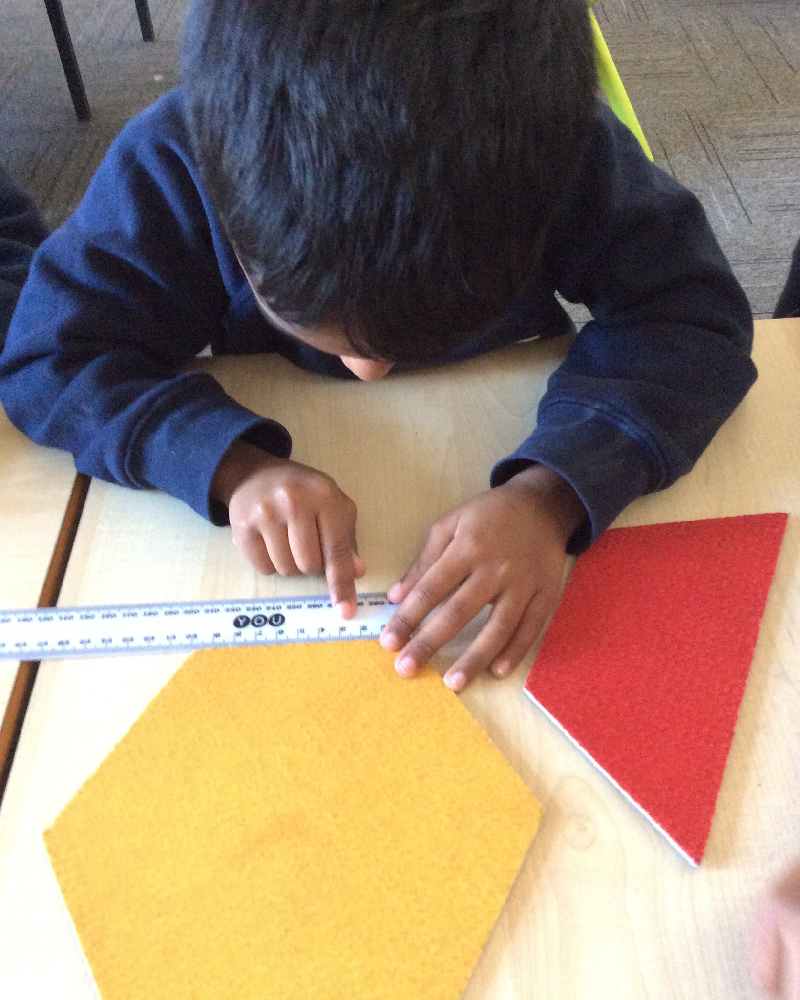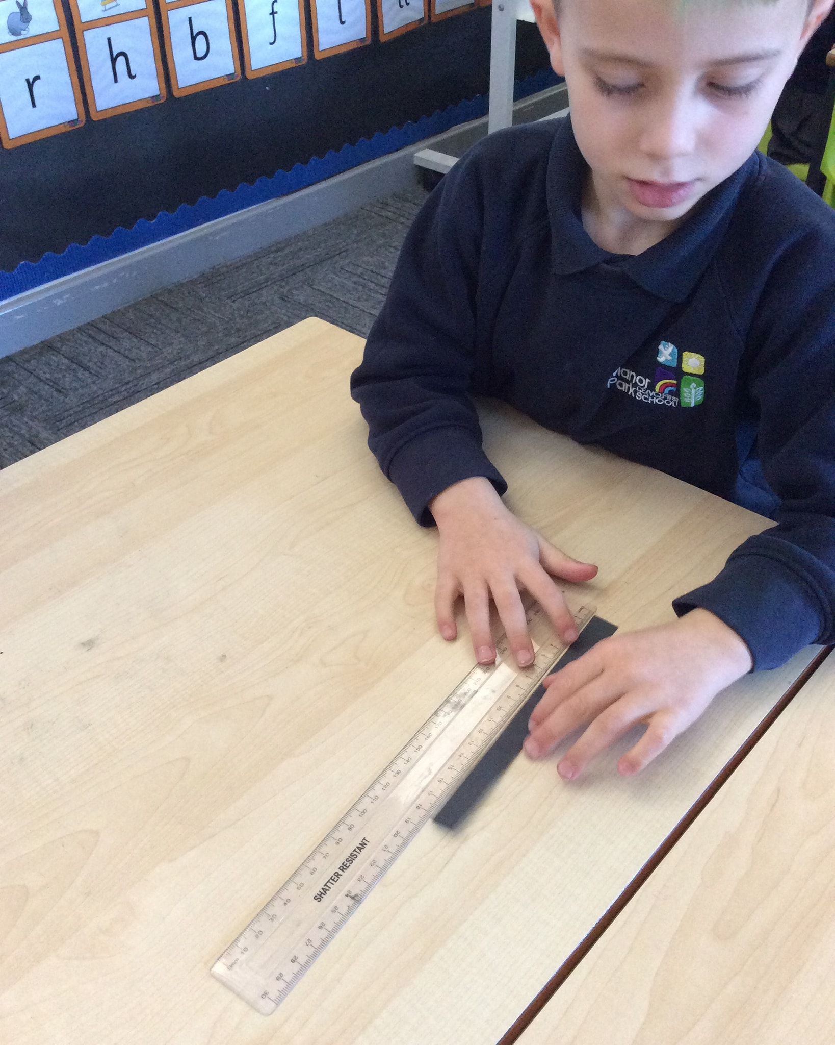 We then explored rulers. First, we had to find the side with centimeters on, and then carefully measured things, being careful to start on zero.